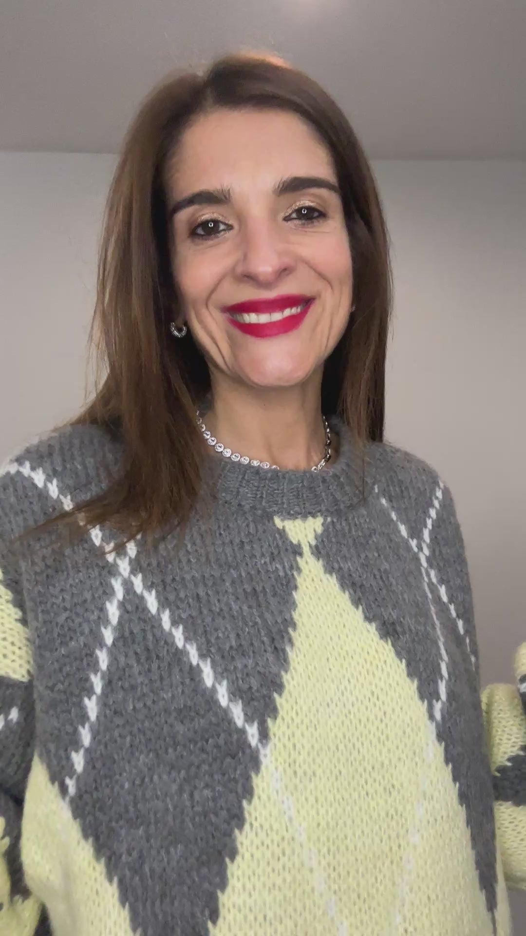 Camisola de malha macia e confortável com um padrão clássico de losangos perfeita para um look de outono/inverno casual e estiloso.